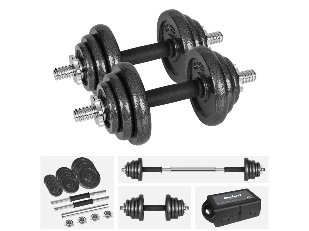 Nastaviteľné liatinové činky v kufri s hriadeľom, sada 20 kg REBEL ACTIVE