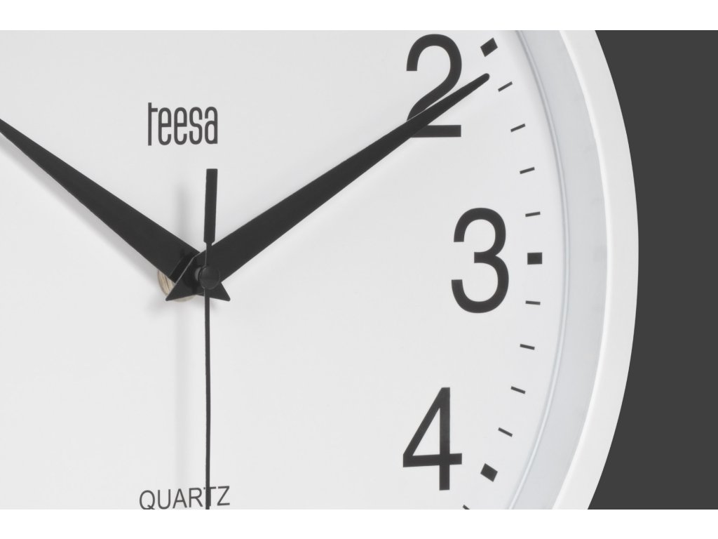 Nástenné hodiny Teesa s priemerom 25 cm sú praktickým a funkčným riešením pre univerzálne použitie. Ak teda máte záujem o nástenné hodiny do kuchyne či detskej izby, pracovne či obývačky, TSA0037 splnia vaše očakávania.