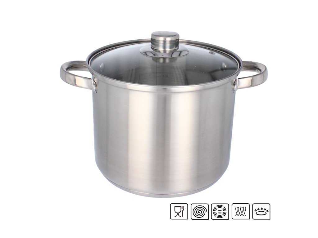 Hrnca z nehrdzavejúcej ocele S/S 201 o rozmeroch 28 × 20 cm a objeme 11 litrov. Vyrobený z vysoko kvalitnej ocele s hrúbkou 0,5 mm, zabezpečujúci trvanlivosť a odolnosť voči korózii. Vybavený viacvrstvovým indukčným dnom pre rýchle a rovnomerné ohrievanie. Obsahuje sklenenú pokrievku umožňujúcu kontrolu varenia, dve držadlá z nehrdzavejúcej ocele a vnútornú mierku na ľahké dávkovanie ingrediencií.