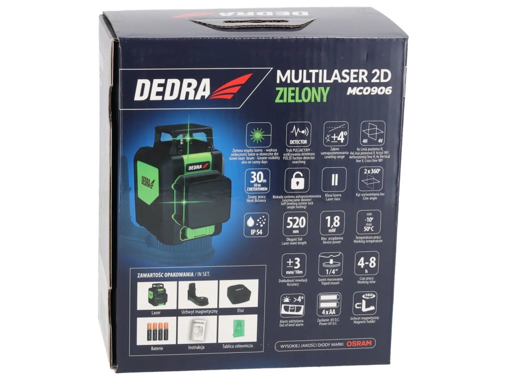 - Rozsah lasera: 30 m (50 m s detektorom)
