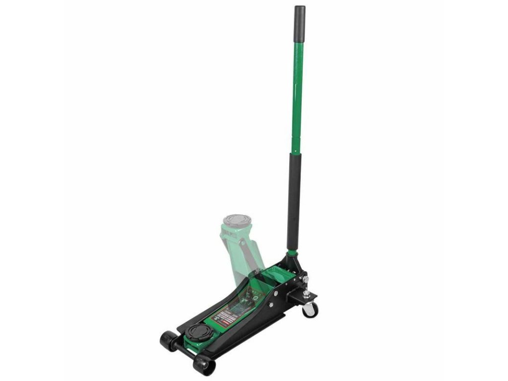 Zdvihák váži 23,5 kg, čo svedčí o jeho masívnej, odolnej a stabilnej konštrukcii. Vďaka tomu zaručuje istotu a bezpečnosť práce aj pod veľkým zaťažením. Napriek svojej váhe nezaberá v pokojovom stave veľa miesta – úspešne ho môžete skladovať v garáži, dielni alebo v kufri väčšieho auta.
