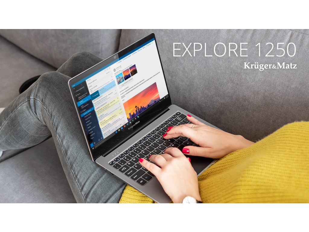 Rozsiahle funkcie ultrabooku Kruger&Matz Explore 1250 sú uzavreté v štýlovom sivom kryte. Navyše vďaka štíhlej línii zariadenia a jeho nízkej hmotnosti ho budete chcieť mať stále pri sebe - v práci, na univerzite alebo na cestách.Systém a hlavné špecifikácie