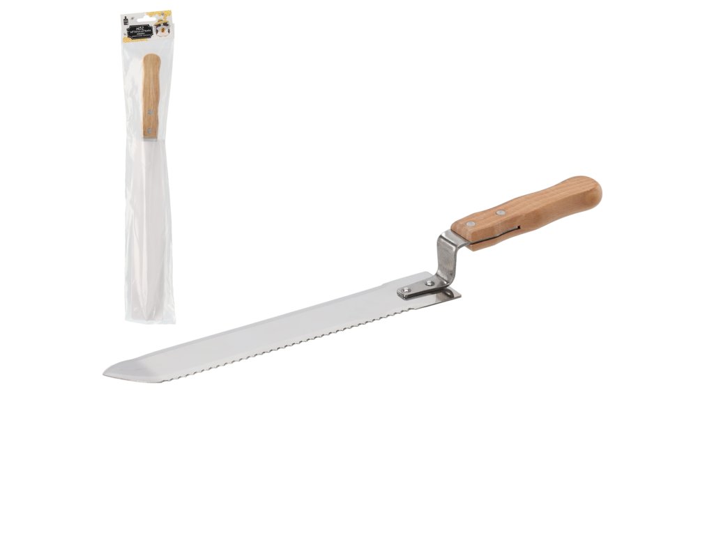 Nôž na odviečkovanie sa ideálne osvedčí v každej včelnici. Je to tradičná metóda odviečkovania rámikov s medom. Zúbkovanie noža umožňuje precízne a účinné odstraňovanie medu z plástu, pričom zároveň minimalizuje poškodenie plástov. Skladá sa z čepele a drevenej rukoväte.Dodatočné parametre