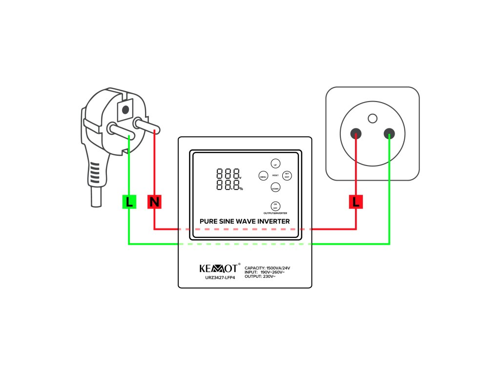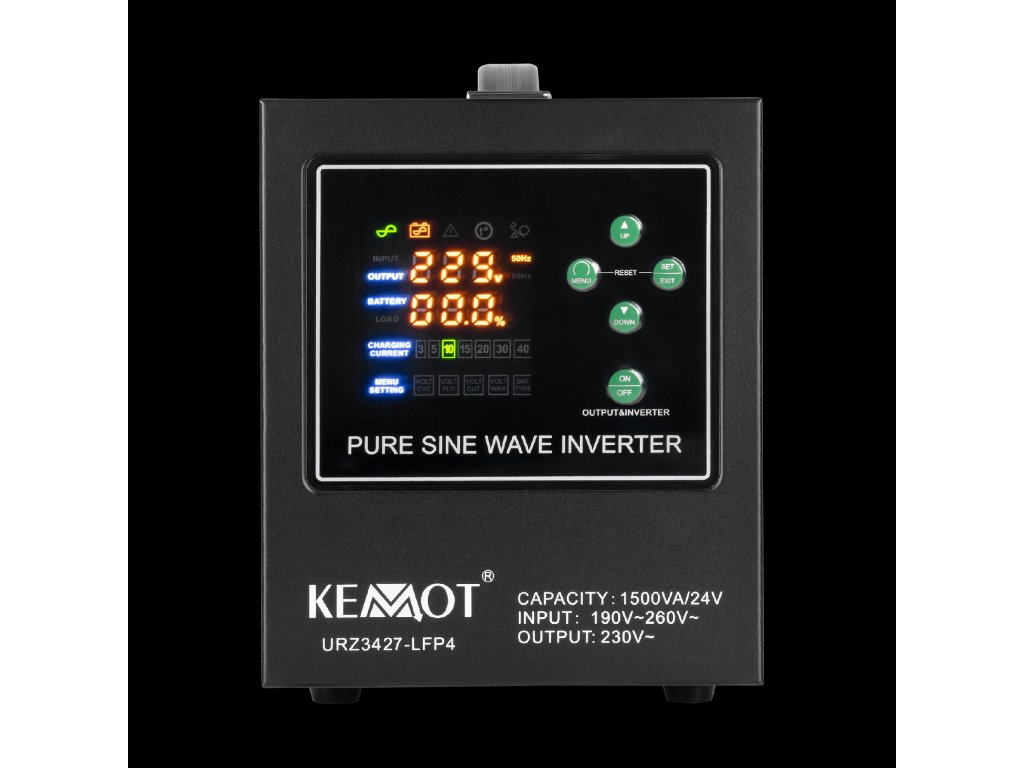 Núdzový zdroj KEMOT PROsinus-1500/24-LFP4 menič s čistým sínusovým priebehom a funkciou nabíjania 24V 230V 1500VA/1050W