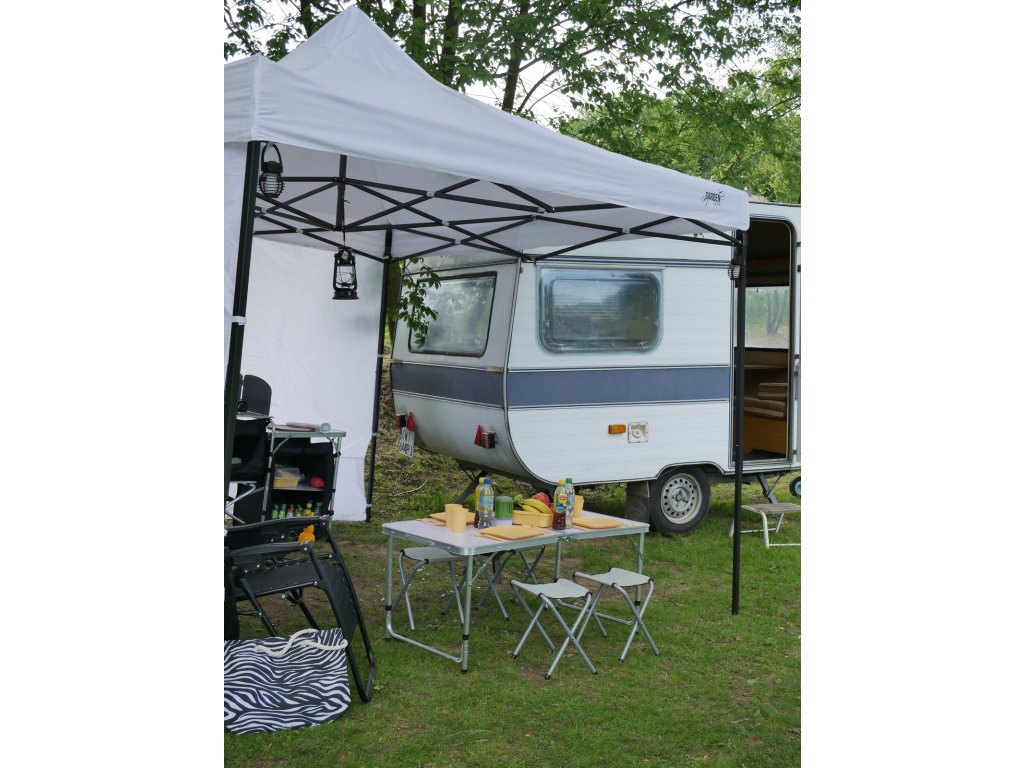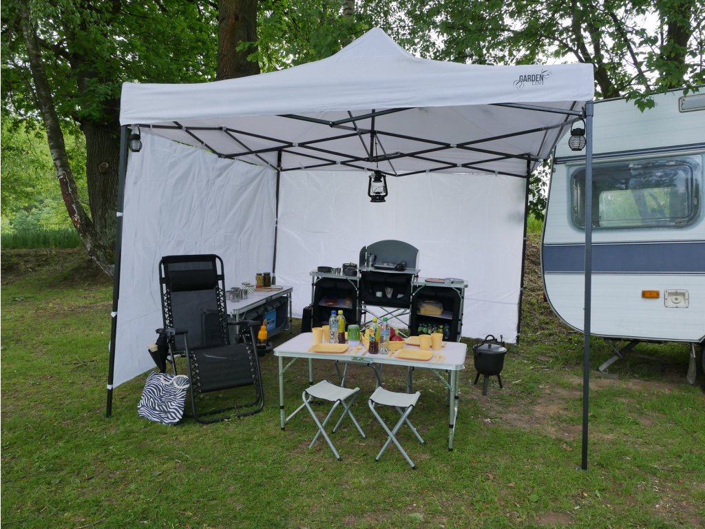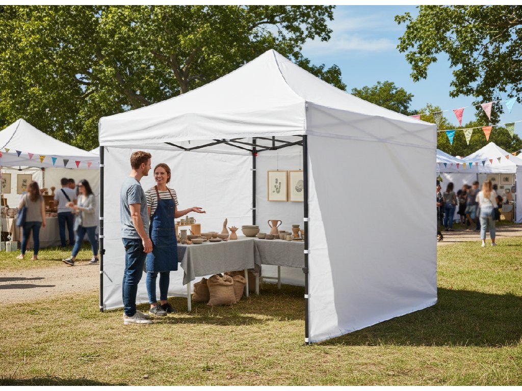 Ochrana pred nadmerným slnkom a dažďom je zabezpečená. Tri steny chránia pred silným vetrom. Stan sa dokonale hodí počas grilovačiek, vonkajších osláv a piknikov v záhrade. Môže tiež slúžiť ako sklad po namontovaní dverí so zipsom, dostupným v ponuke. Tiež sa osvedčuje ako obchodný stan.