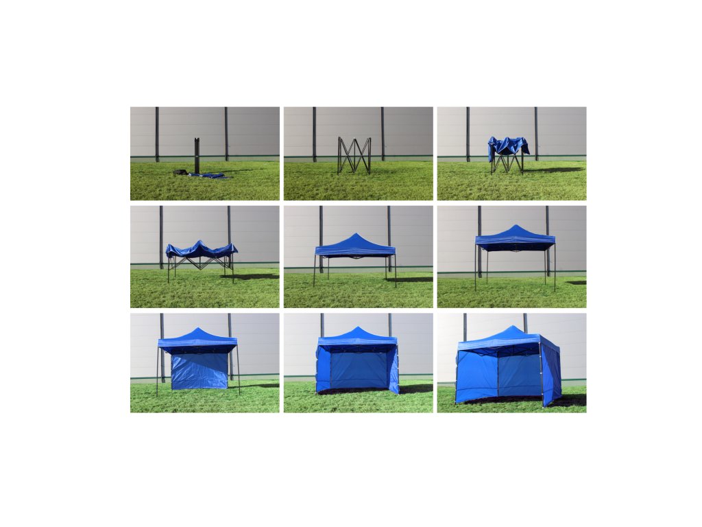 Ochrana pred nadmerným slnečným žiarením a dažďom je zaručená. Tri steny chránia pred silným vetrom. Stan je výborný počas grilovačiek, vonkajších podujatí a piknikov v záhrade. Môže tiež slúžiť ako sklad po namontovaní dverí so zipsom, ktoré sú dostupné v ponuke. Rovnako dobre poslúži ako obchodný stan.