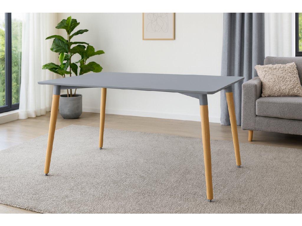 Škandinávsky stôl 120x80x74 cm s lakovanou doskou MDF a drevenými nohami. ##Stabilná## konštrukcia, ##protišmykové## nožičky a ľahká montáž. Ideálny do obývačky, jedálne alebo kancelárie – jednoduchý, elegantný a funkčný.