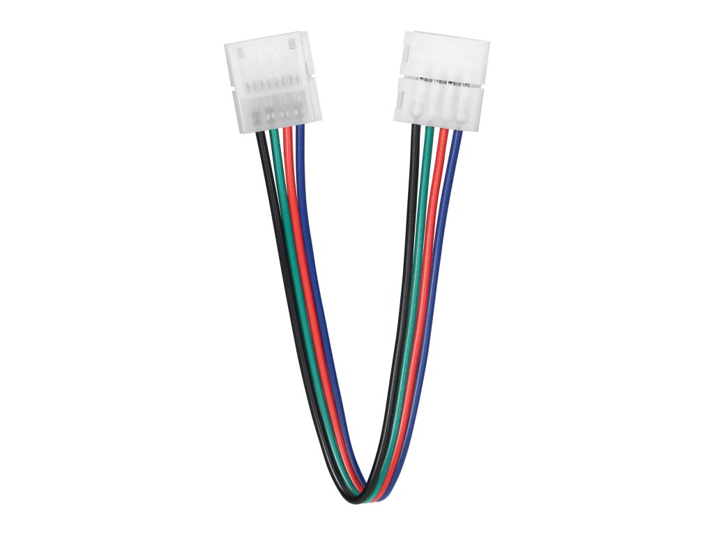 - Vložte konce LED pásika do Obojstranného RGB LED konektora 10mm s káblom.