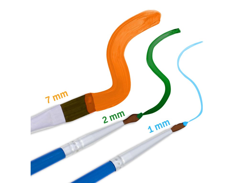 - Štetec 7 mm: ideálny na maľovanie veľkých plôch a rýchle pokrytie pozadia.
