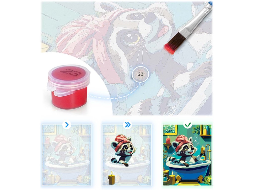 - Priraďte farbu k číslu: každá plocha na plátne má pridelené číslo, ktoré zodpovedá konkrétnej farbe zobrazené v súprave.