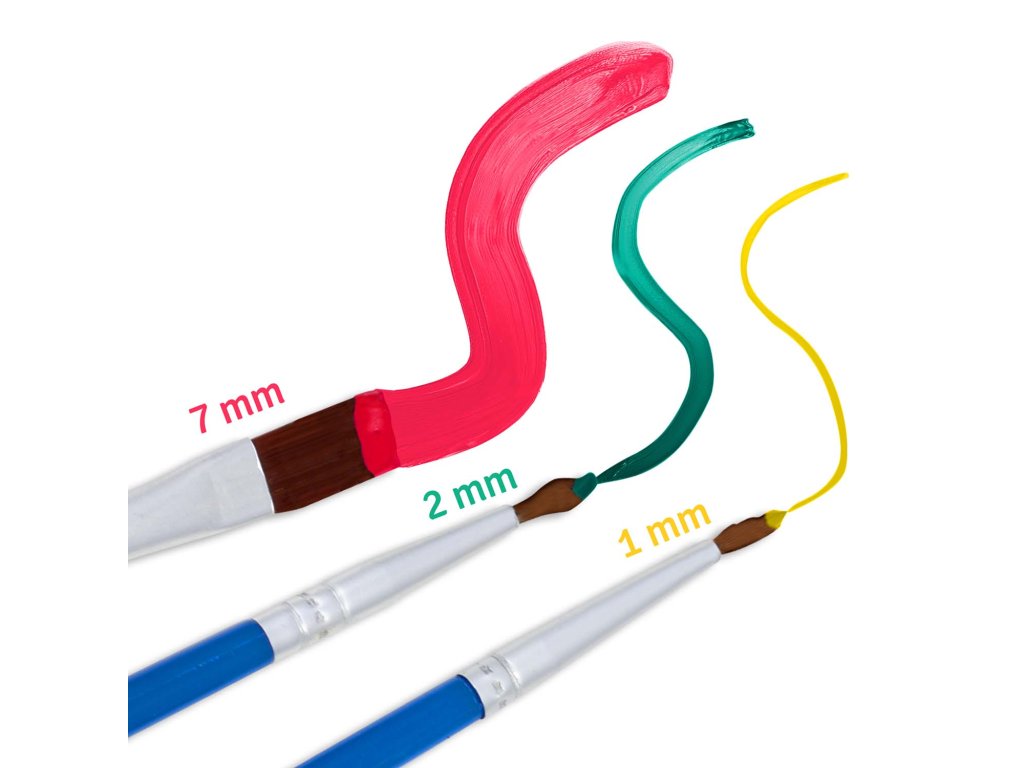 - 3 štetce v súprave – ZADARMO – rôzne veľkosti na presné maľovanie.