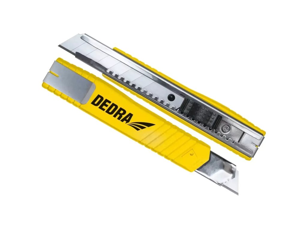 Telo: ABS žltej farby Rukoväť: TPR čiernej farby Mechanizmus: Automatická blokáda čepele Čepeľ: 1 kus čepele 18 mm namontovanej z výroby Materiál čepele: oceľ SK5