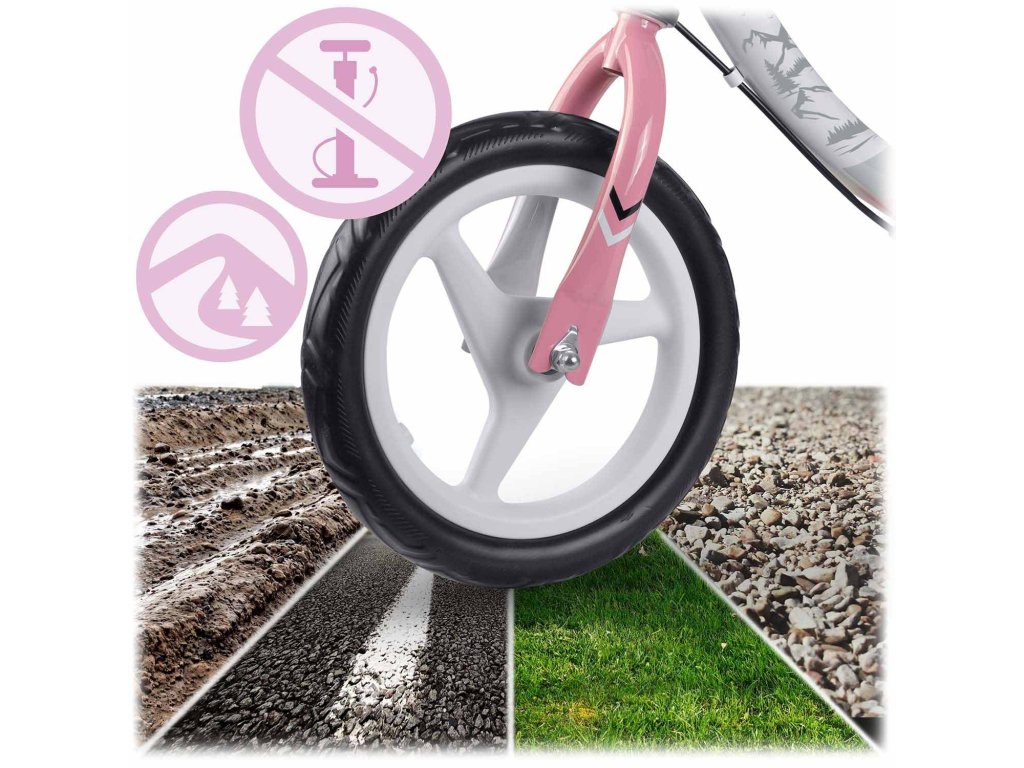 - Kolesá: veľké, pevné kolesá z peny EVA s odolnými plášťami, zabezpečujúce stabilitu a plynulosť jazdy. Tichá prevádzka počas jazdy znamená, že odrážadlo nie je nepríjemné pre ucho ani počas jazdy v dome.