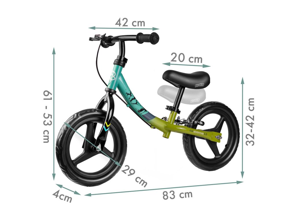 - Dlhšia doba používania: možnosť nastavenia výšky sedadla až o 10 cm umožňuje prispôsobiť odrážadlo meniacej sa výške dieťaťa, takže odrážadlo môže byť používané dlhšie obdobie.