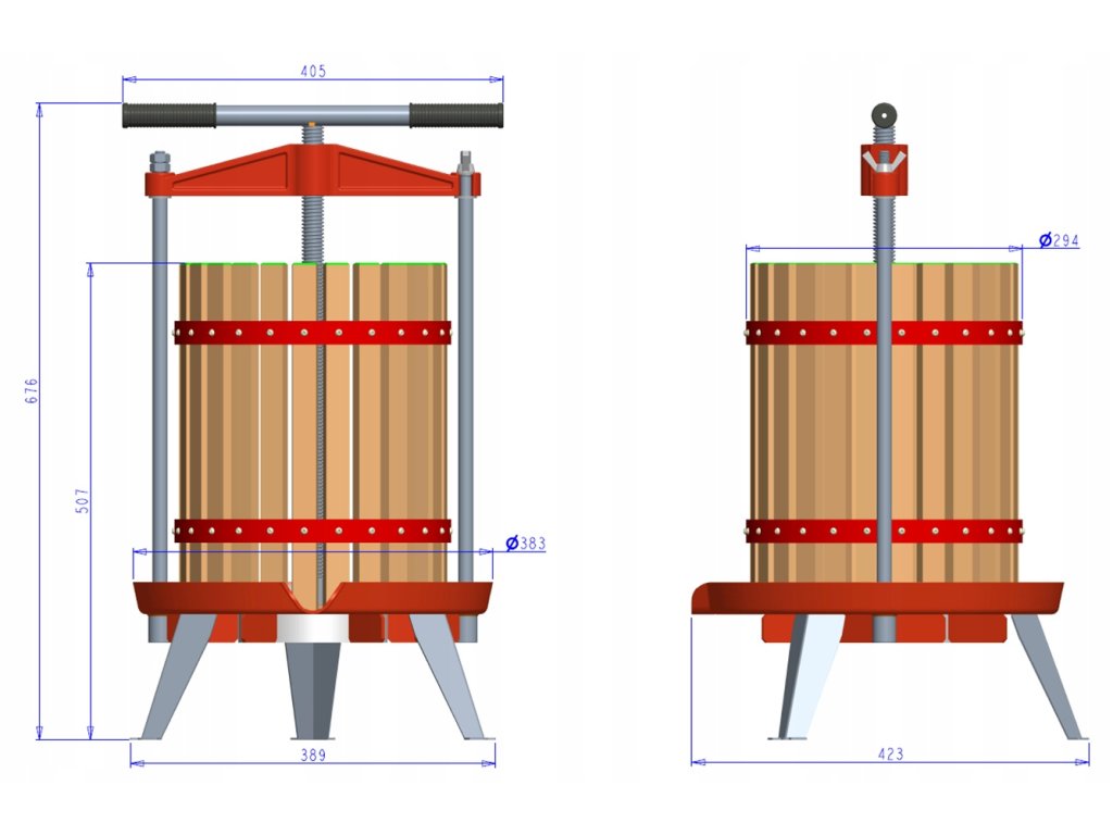 Odšťavovač s objemom 12 L, určený na odšťavovanie šťavy hlavne z mäkkého ovocia. Tvrdé alebo viacsemenné ovocie by malo byť najprv spracované. Odšťavovač je vybavený dreveným košom, tlakom lisu a základňou z oceľového plechu, čo zaručuje solídnu konštrukciu a efektívnosť pri práci. Ideálny na výrobu štiav v domácich podmienkach, v záhradníctve a poľnohospodárstve.