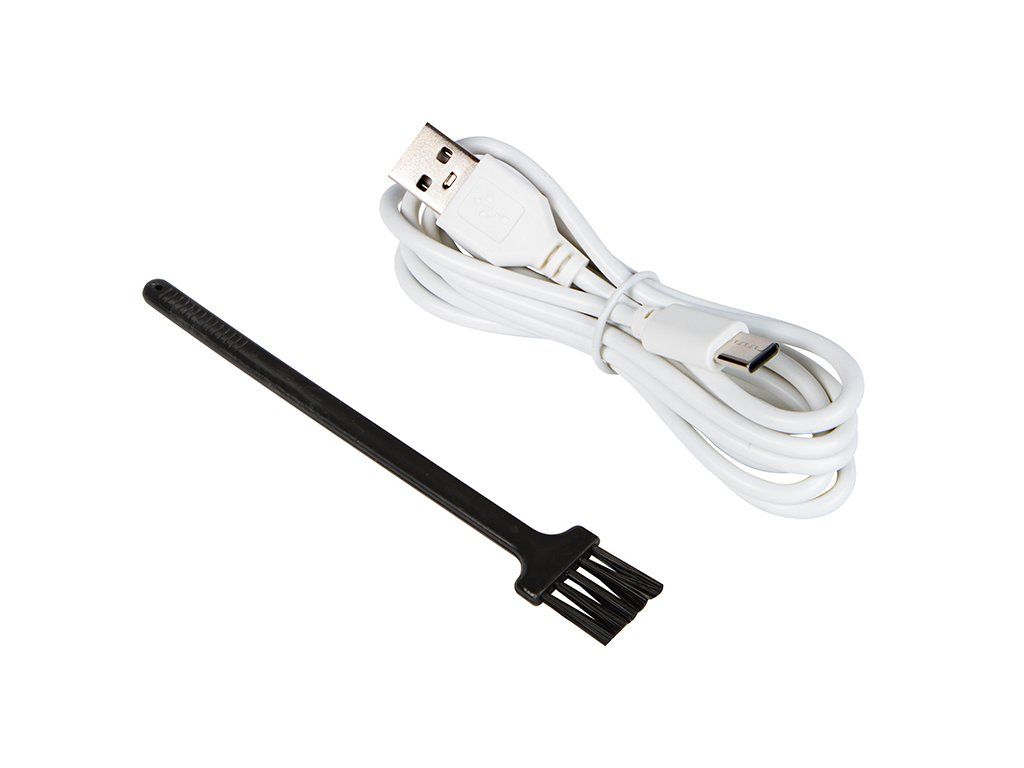 Zariadenie je vybavené batériou s kapacitou 2000 mAh a nabíja sa cez USB-C. Na jedno nabitie ponúka až 3 hodiny práce bez prestávky, pričom plné nabitie trvá približne 90 minút. Úroveň nabitia zobrazuje praktický LCD displej.