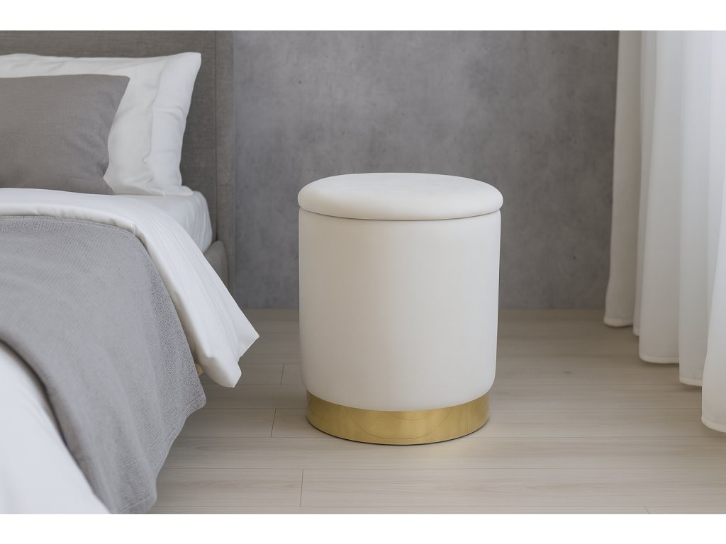 Elegancia ? a funkčnosť ??? v kompaktnej forme robia túto pufu malým nábytkom, ktorý urobí veľký dojem ?? v je vašom interiéri. Jej glamour štýl ? zdôrazňuje krémová farba v kombinácii so zlatým dokončením, čo dodáva každej miestnosti nádych luxusu. Vďaka svojej viacúlohovosti ?????? sa osvedčí ako pohodlné sedenie, praktická podnožka alebo elegantná ozdoba interiéru.