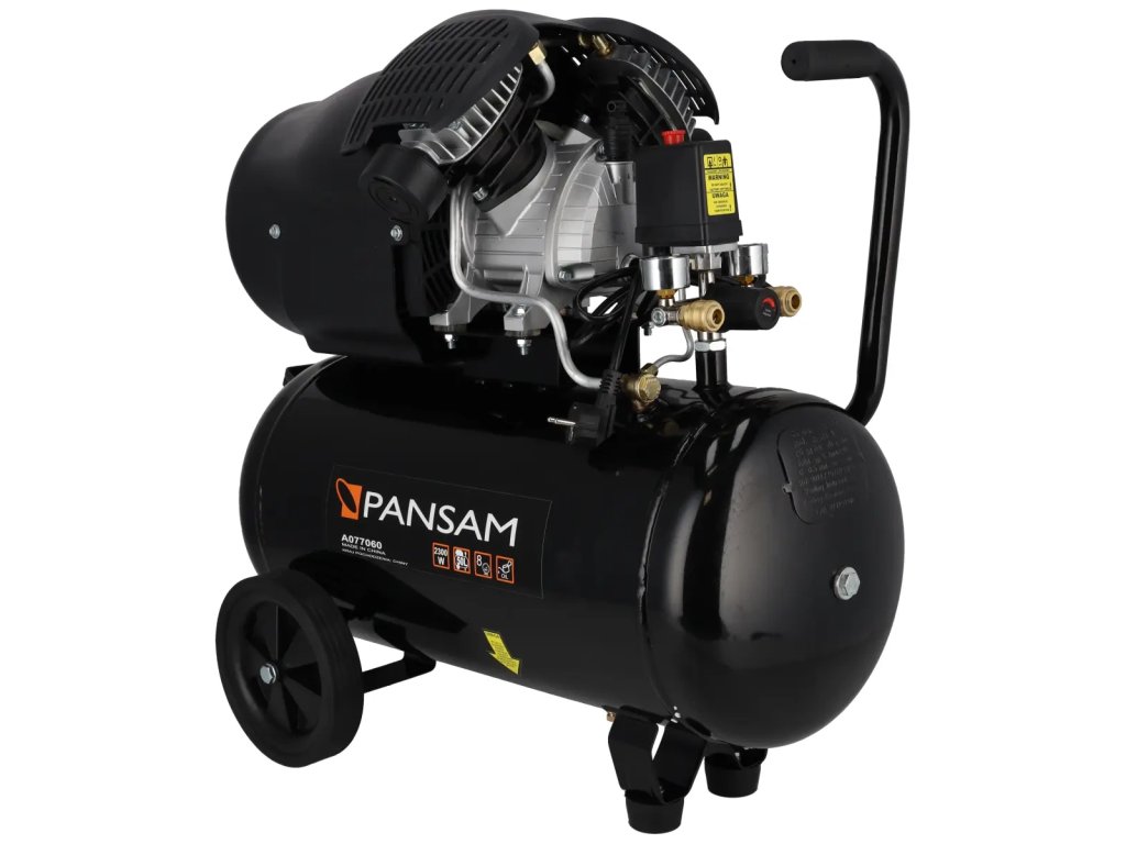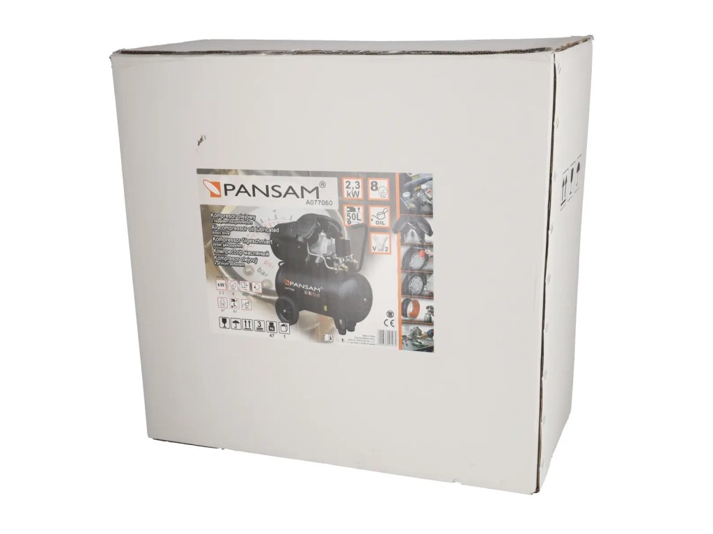 Olejový kompresor je určený na stláčanie atmosférického vzduchu a s vhodným vybavením ho možno použiť na fúkanie, čistenie, umývanie,čerpanie kolies, lakovanie atď. Kompresor má motor s výkonom 2 300 W a 50-litrovú nádrž. Kompresor má motor s výkonom 2 300 W a 50-litrovú nádrž. Kompresor má motor s výkonom 2 300 W a nádrž s objemom 50 l. Veľké prepravné kolesá umožňujú rýchlu a jednoduchú prepravu kompresora. Zariadenie je vybavené dvoma manometrami a dvoma prípojkami, čo výrazne zvyšuje účinnosť kompresora. Vlastnosti zariadenia PANSAM Compre sora A077060: