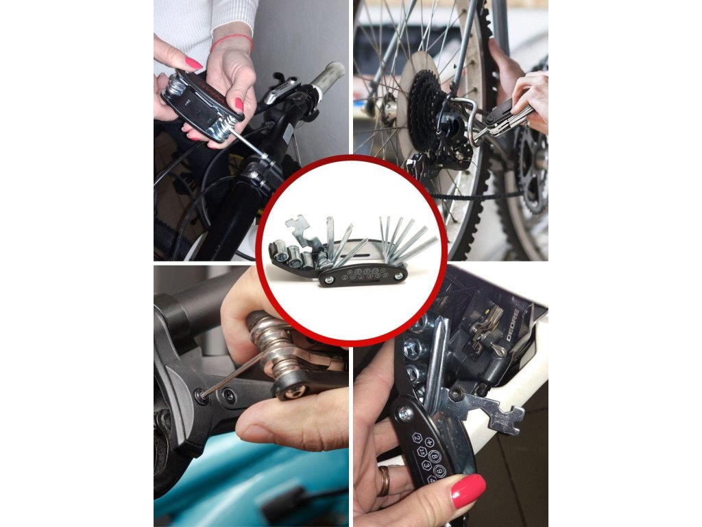 Naša súprava má až 25 prvkov, pričom je malá a odolná. Súprava sa zmestí aj do batohu a nezaberie v ňom veľa miesta. S touto opravnou súpravou na bicykle môžete zalátat dušu, vymeniť koleso, dotiahnuť rám alebo opraviť prehadzovačky.