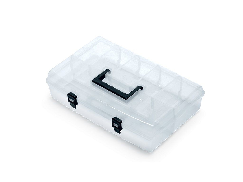 Organizér do dielne 5629- je praktický a prehľadný pomocník na uskladnenie drobného materiálu, náradia a príslušenstva. Vďaka priehľadnému prevedeniu máte obsah vždy na očiach a rýchlo nájdete presne to, čo potrebujete. Je vhodný do dielne, garáže, domácnosti aj na voľnočasové aktivity, napríklad pre rybárov.