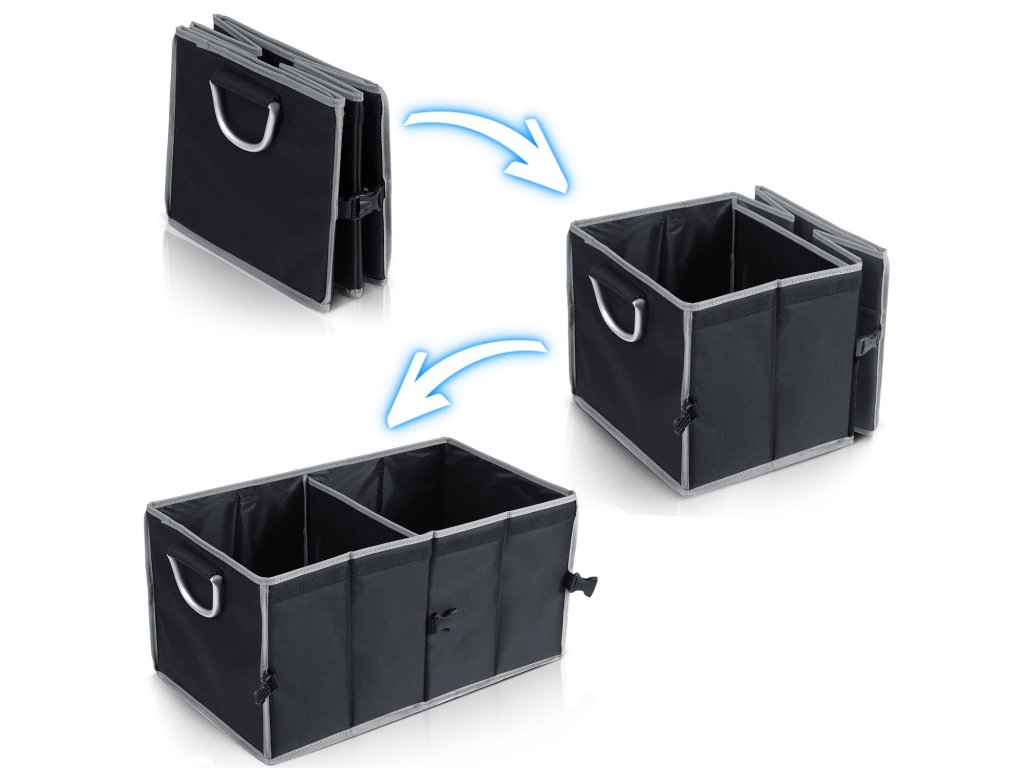 Vďaka protišmykovým suchým zipsom na spodnej strane sa nepresúva v kufri v zákrutách ani pri brzdení, čo zaručuje maximálnu stabilitu a bezpečnosť skladovaných vecí.