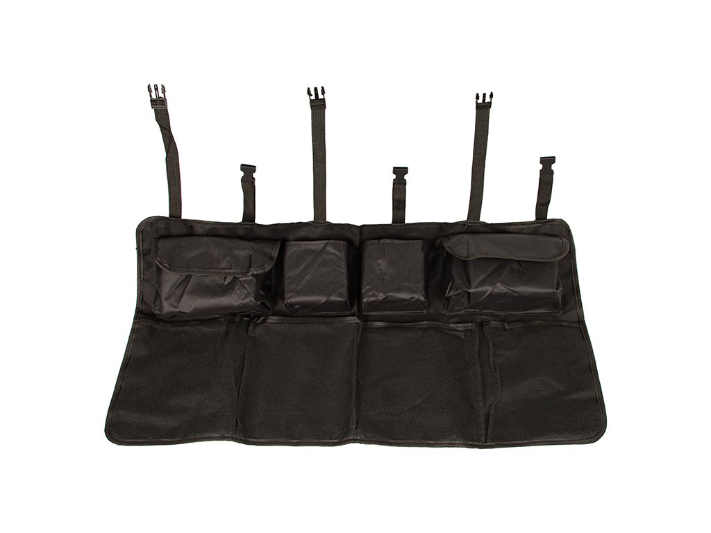 - Jednoduchá inštalácia: Rýchle a jednoduché pripevnenie na zadné sedadlo pomocou nastaviteľných popruhov s prackami, ktoré zabezpečujú, že organizér bude pevne držať na mieste.