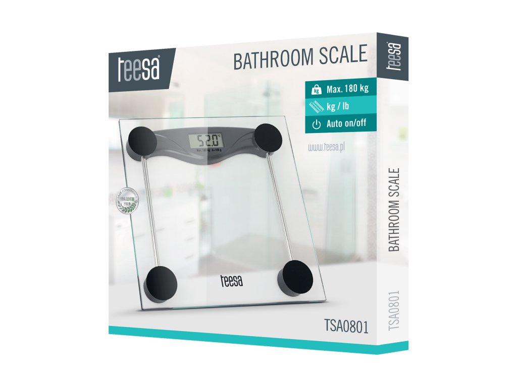 Chcete mať svoju hmotnosť pod kontrolou? Alebo chcete sledovať účinky novej diéty v reálnom čase? TSA0801 vás bude informovať o zmenách vašej hmotnosti s presnosťou na 0,1 kg. Váha má ľahko čitateľný LCD displej, na ktorom sa merania môžu zobrazovať v jednej z troch jednotiek - kilogramy, libry alebo kamene. Ďalšou výhodou výrobku je jeho klasický dizajn - vďaka sklenenej priehľadnej vážiacej plošine máte istotu, že bude dokonalým doplnkom každej kúpeľne bez ohľadu na dekor.