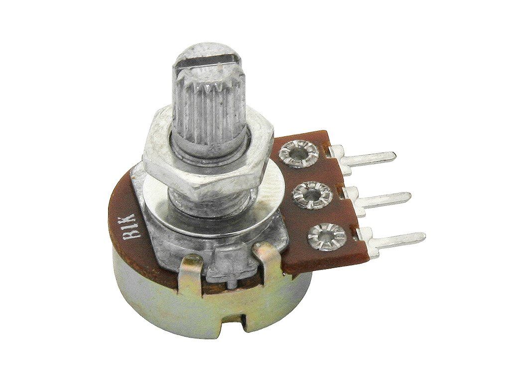 Potenciometer 500k ohm 8773- je otočný lineárny potenciometer s odporom 500 k?, vhodný na presné plynulé nastavenie v elektronických zariadeniach. Má kovové telo, hriadeľ s...