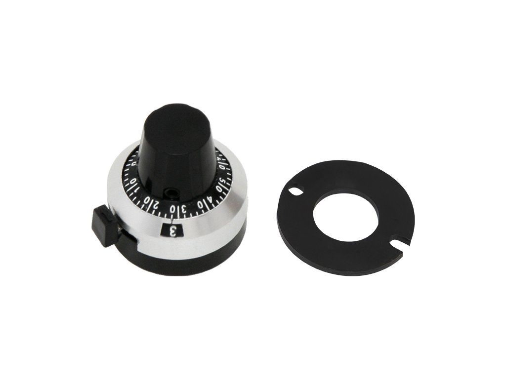 Otočný potenciometer 8396- je praktický ovládací gombík určený na presné nastavenie hodnôt vo viacotáčkových potenciometroch typu helipot. Vďaka viacotáčkovému prevedeniu umožňuje jemné a spoľahlivé dolaďovanie, čo oceníte pri zariadeniach, kde je dôležitá presnosť a stabilné nastavenie.