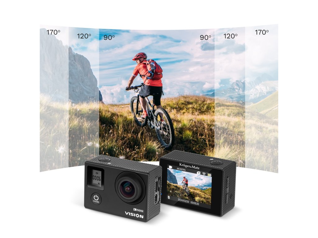 Športová kamera Kruger&Matz Vision L400 vám umožní nahrávať videá v kvalite 4K pri 30 snímkach za sekundu. Zariadenie podporuje aj kodek H.265! Takéto parametre zaručia, že zachytíte každý detail svojich najvzrušujúcejších dobrodružstiev.