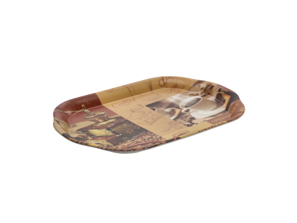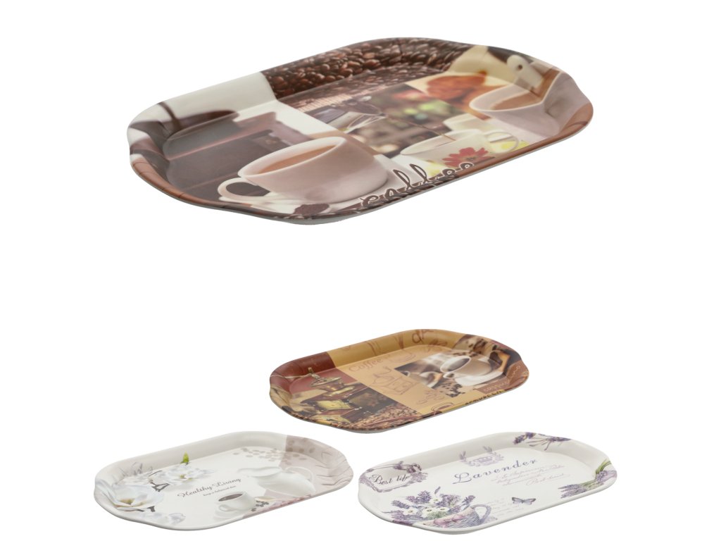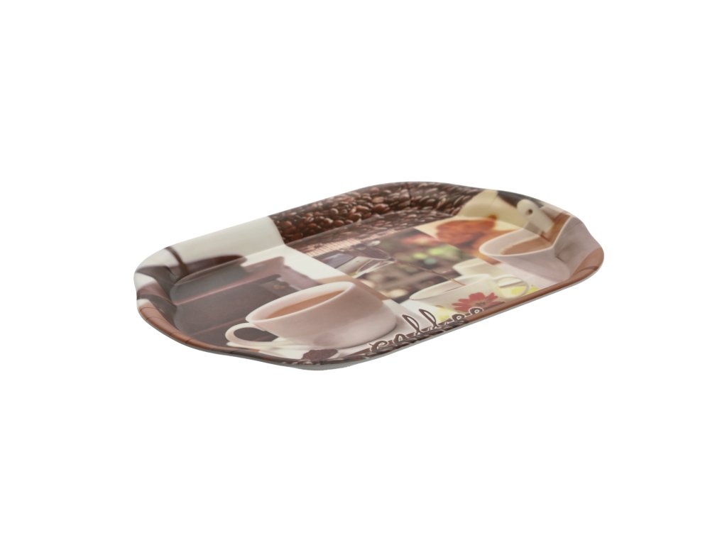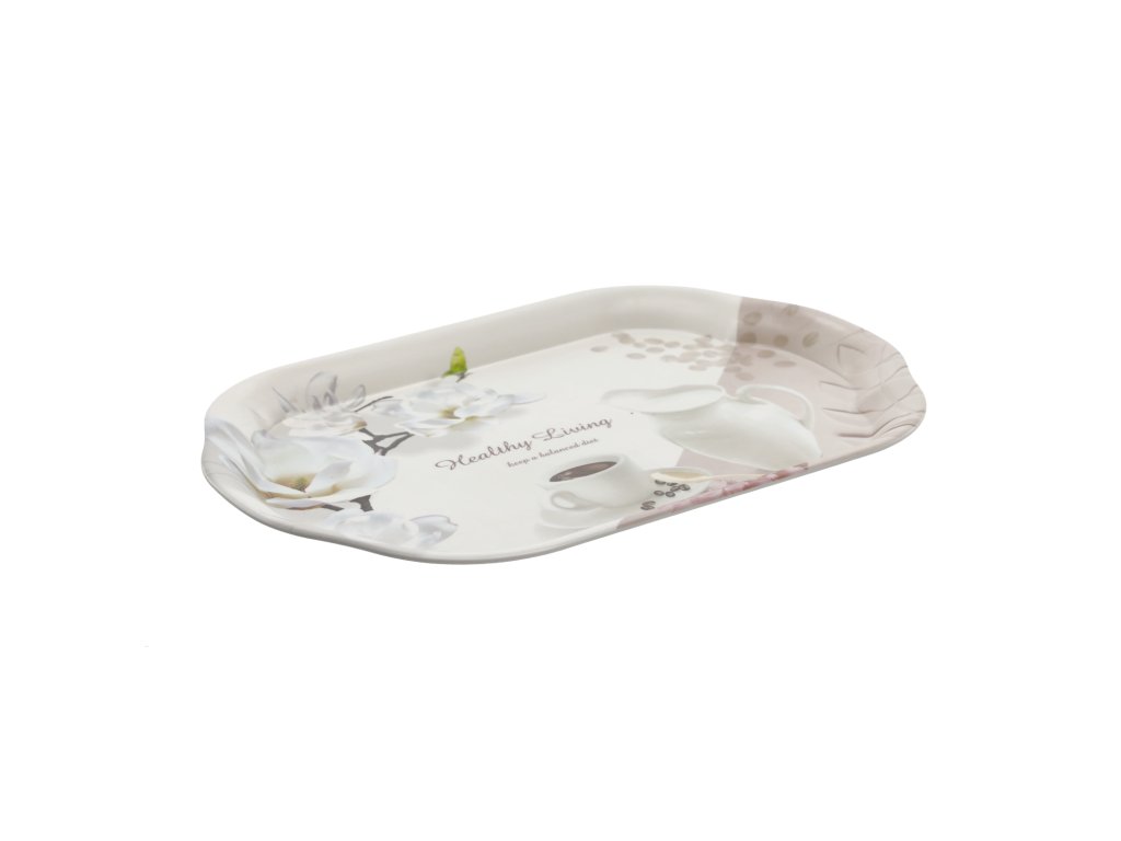 Oválna tácka s rozmermi 45,5x31,5 cm. Veľmi praktická, vyrobená z odolného plastu. Originálny tvar a zaujímavý vzor ju robia ozdobou samou o sebe.Hmotnosť: 350 g.