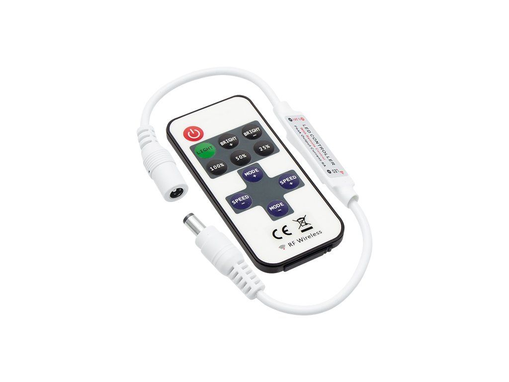 Tento ovládač LED pásu 72W umožňuje pohodlnú reguláciu intenzity svetla aj prepínanie svetelných efektov. V zariadení sú prednastavené úrovne stmievania, rýchlosti aj dynamické programy, takže si viete prispôsobiť atmosféru presne podľa potreby. Po odpojení od napájania si navyše pamätá posledné nastavenie.