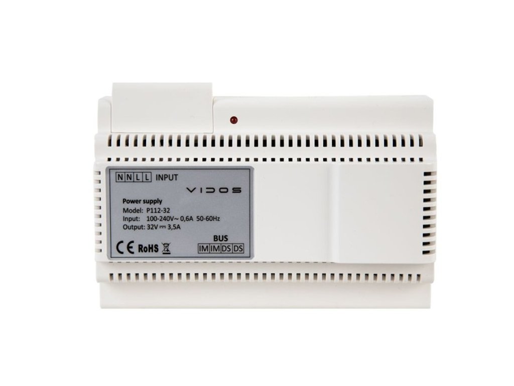 Napájací zdroj P112-32 značky Vidos je určený na prácu v 2-žilovom digitálnom systéme série 2IP. Plní funkciu napájacieho zdroja a separátora napätia a signálu. Má široký rozsah vstupného napätia v rozsahu 100V - 240V AC. Je možné napájať až 16 monitorov súčasne. Montuje sa na DIN lištu.