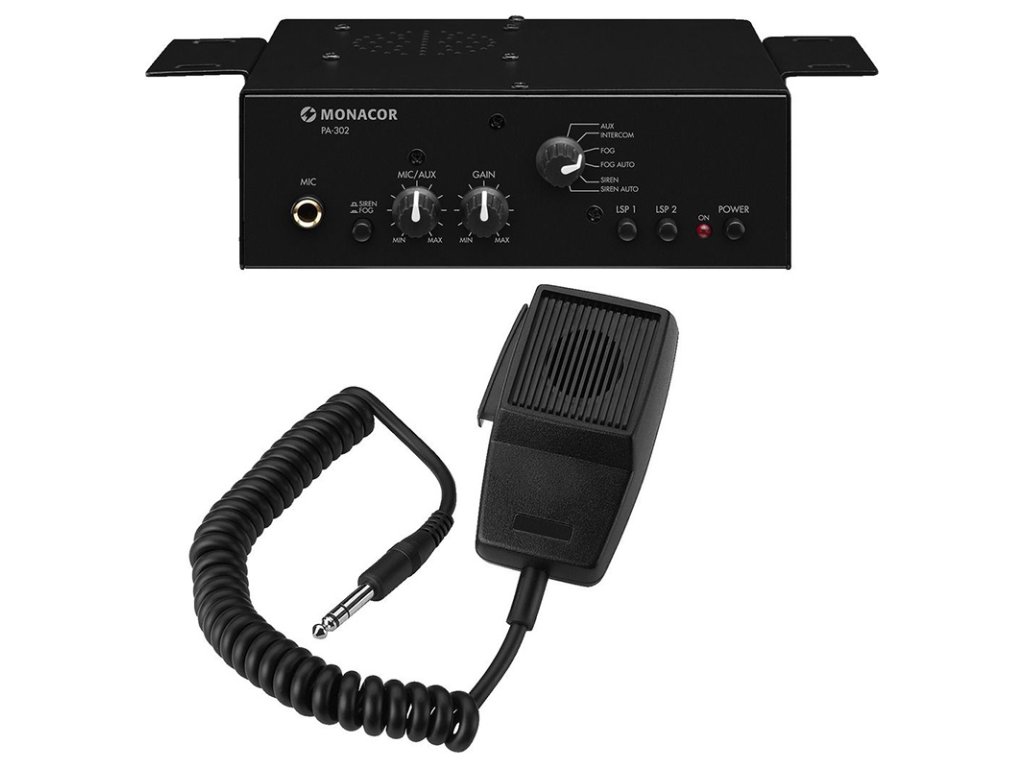 PA-302 - Zosilňovač s mikrofónom mixovací PA mono, 15W RMS - MONACOR