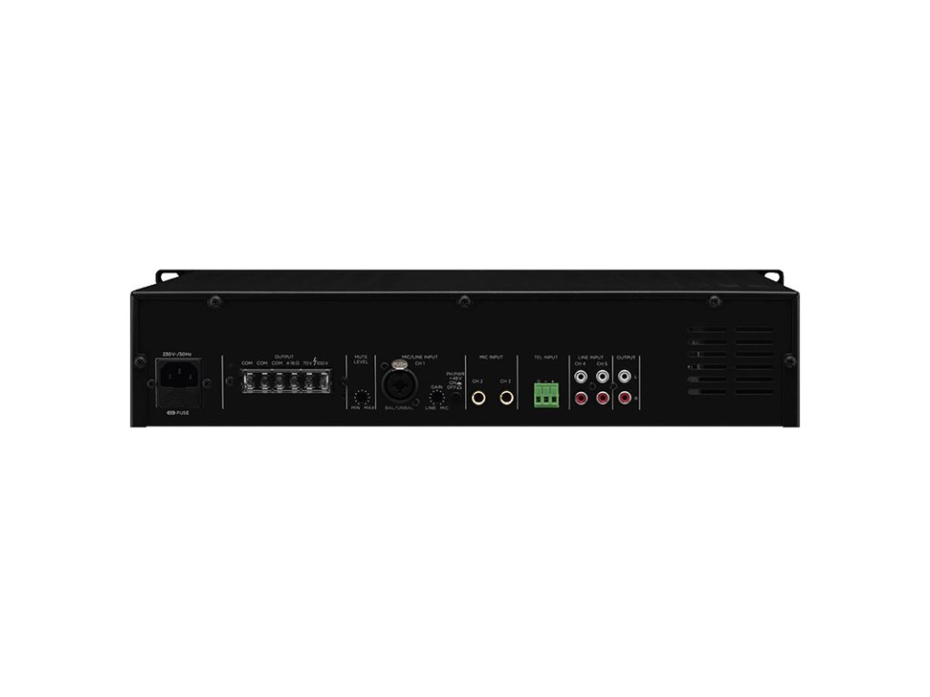 Mixážny zosilňovač s menovitým výkonom 120W určený na použitie v systémoch PA. Bezproblémovo spolupracuje s nízkoimpedančnými reproduktormi 4, 8, 16, a tiež s vysokoimpedančnými 70V a 100V. Funkcia talkover umožňuje stlmiť ostatné kanály. Disponuje bezventilátorovým systémom chladenia, čo zaručuje jeho tichý chod. Zariadenie je vyrobené z vysokokvalitných materiálov zabezpečujúcich bezproblémové používanie po dlhý čas. Vďaka jednoduchej obsluhe sa výborne hodí do rôznych systémov na miestach ako školy, kancelárie, obchodné pasáže, miesta kultu či zasadacie miestnosti. Môže byť montovaný v skrinkách RACK 19".