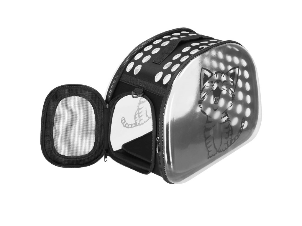- Bočné steny sú pevné, vyrobené z priehľadného materiálu, na každej je potlač s mačičkou