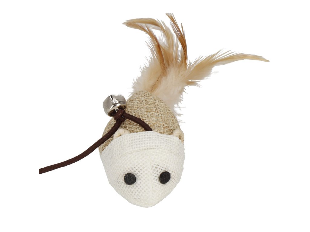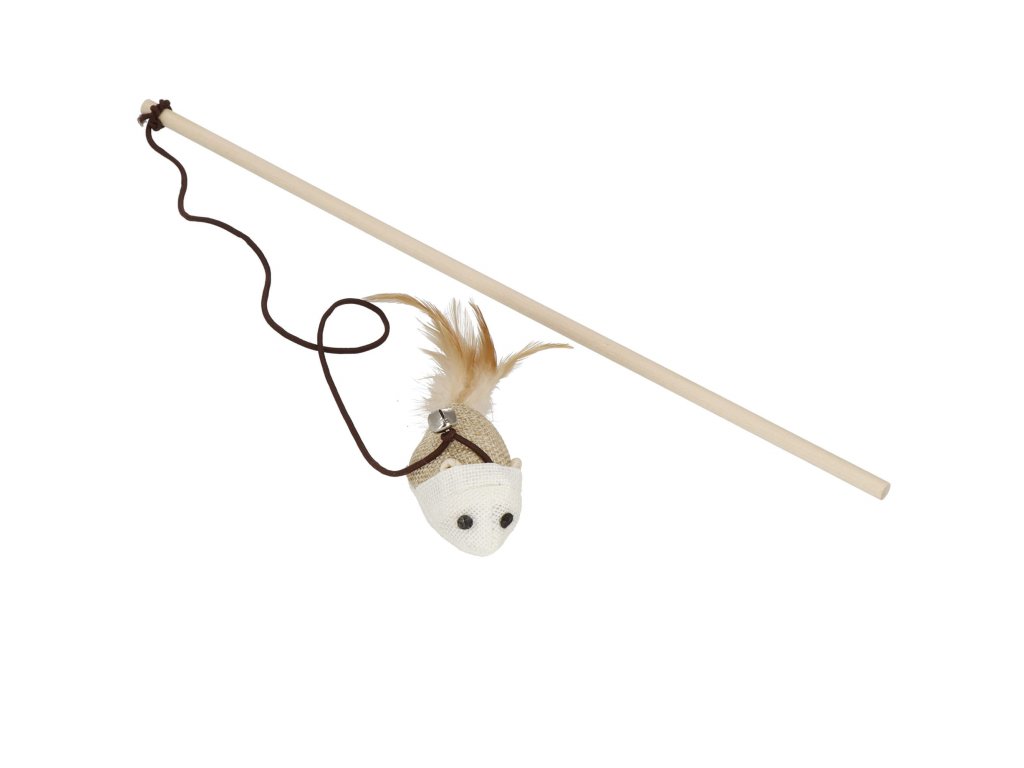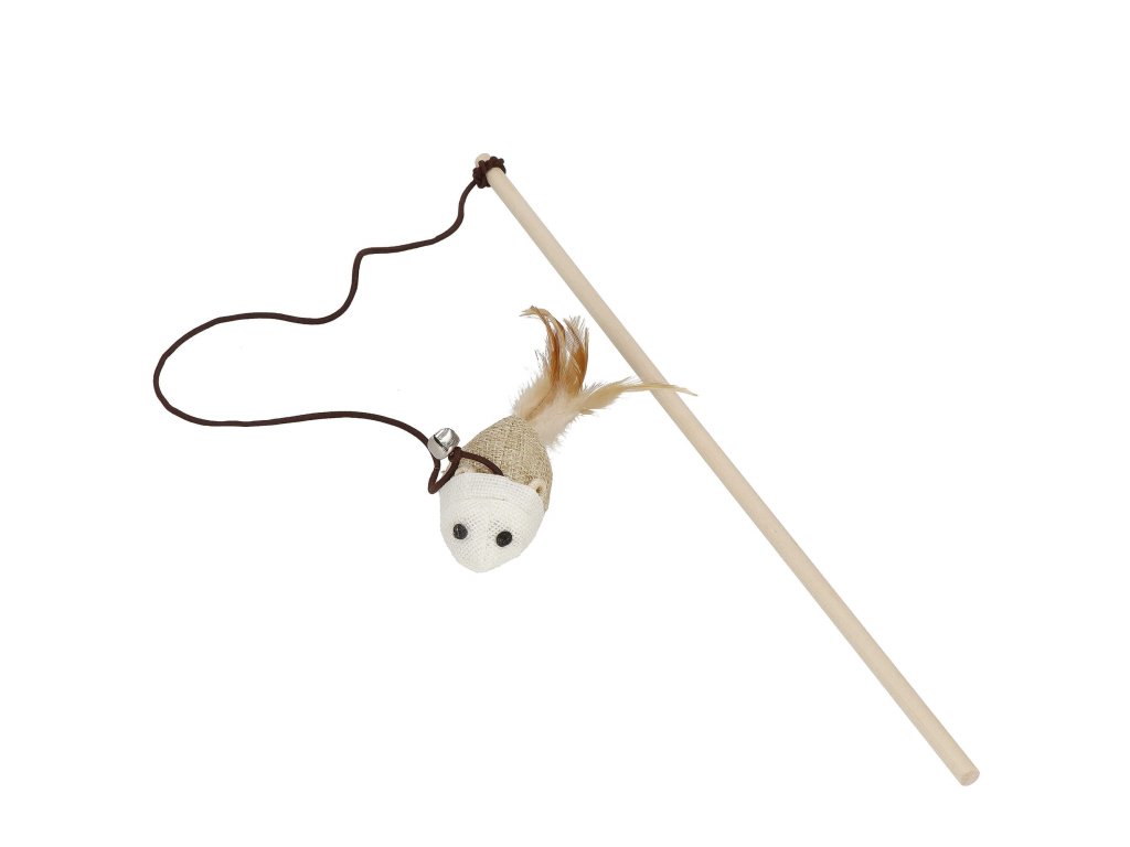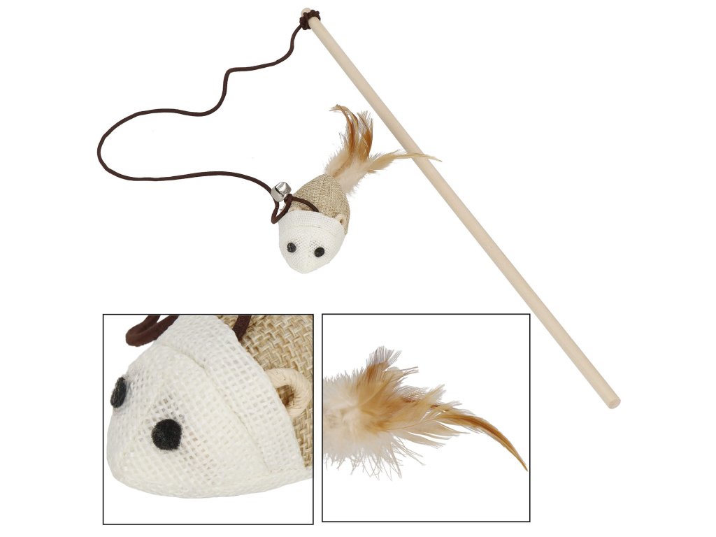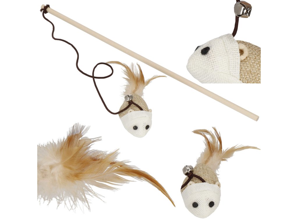 - Springos® Farba: odtiene hnedej / biela Typ: hračka pre mačky - palička, udica Hračka vybavená myškou s pierkom + zvonček Myška namontovaná na elastickej šnúrke (gumičke)