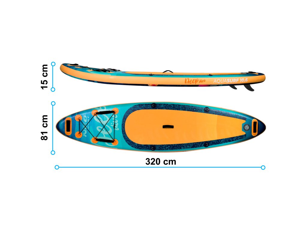 Vaša doska SUP bude pevná a napriek tomu ľahko prenosná . Ideálne pre nadšencov vodných športov, ktorí hľadajú spoľahlivé a pohodlné vybavenie pre akékoľvek dobrodružstvo na vode.