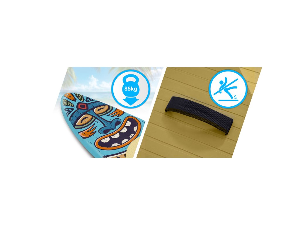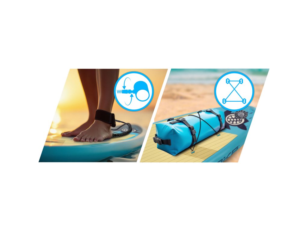 Batoh, mikina, nápoj Hodíš pod gumičky a plávaš na trasu! Elastická sieťka na prednej strane dosky je pohodlné miesto na tvoje vybavenie.