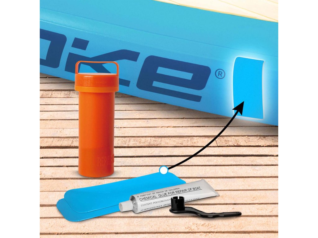 Kompletná sada — v sade je pádlo, pumpa, sedadlo, surfová šnúra (leash) a batoh.