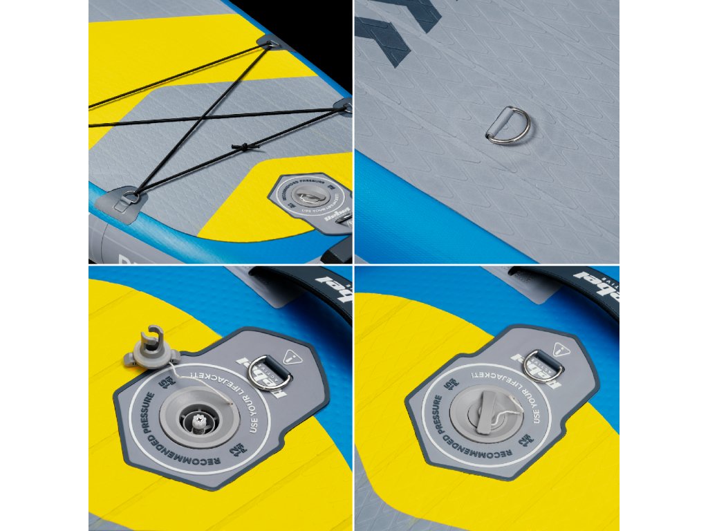 Doska RBA-4507 SUP je dostupná v troch farbách. Elegantná sivá mu dodáva moderný a štýlový vzhľad, modrá dodáva pocit pokoja a oranžová vás nechá vyniknúť a dodá dynamiku akémukoľvek vodnému dobrodružstvu.