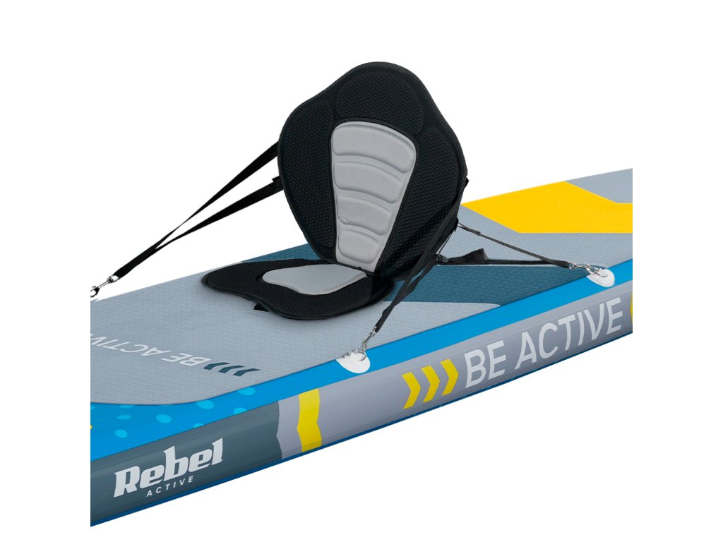 Pre ešte väčšie pohodlie a stabilitu pri pádlovaní je doska Rebel Active SUP vybavená pohodlným sedadlom s operadlom, ktoré sa dá ľahko pripevniť a odobrať podľa vašich preferencií. Toto riešenie umožňuje pohodlný odpočinok počas dlhších výletov na vode. Posaďte sa, relaxujte a užívajte si výhľady a pokoj prírody.