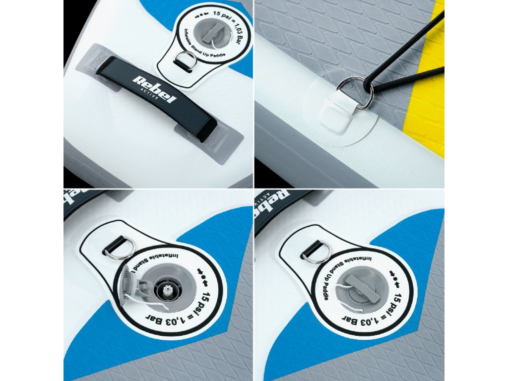 Paddleboard Rebel Active sa vyznačuje pevnou a stabilnou konštrukciou vyrobenou technológiou drop-stitch. To vám umožní bezpečne sa pohybovať po vode bez ohľadu na vašu úroveň zručností, či už v stoji alebo v sede. Protišmyková doska pokrytá 3 mm hrubou penou EVA poskytuje vynikajúcu priľnavosť, vďaka čomu bude aj ten najintenzívnejší paddleboarding hračkou.