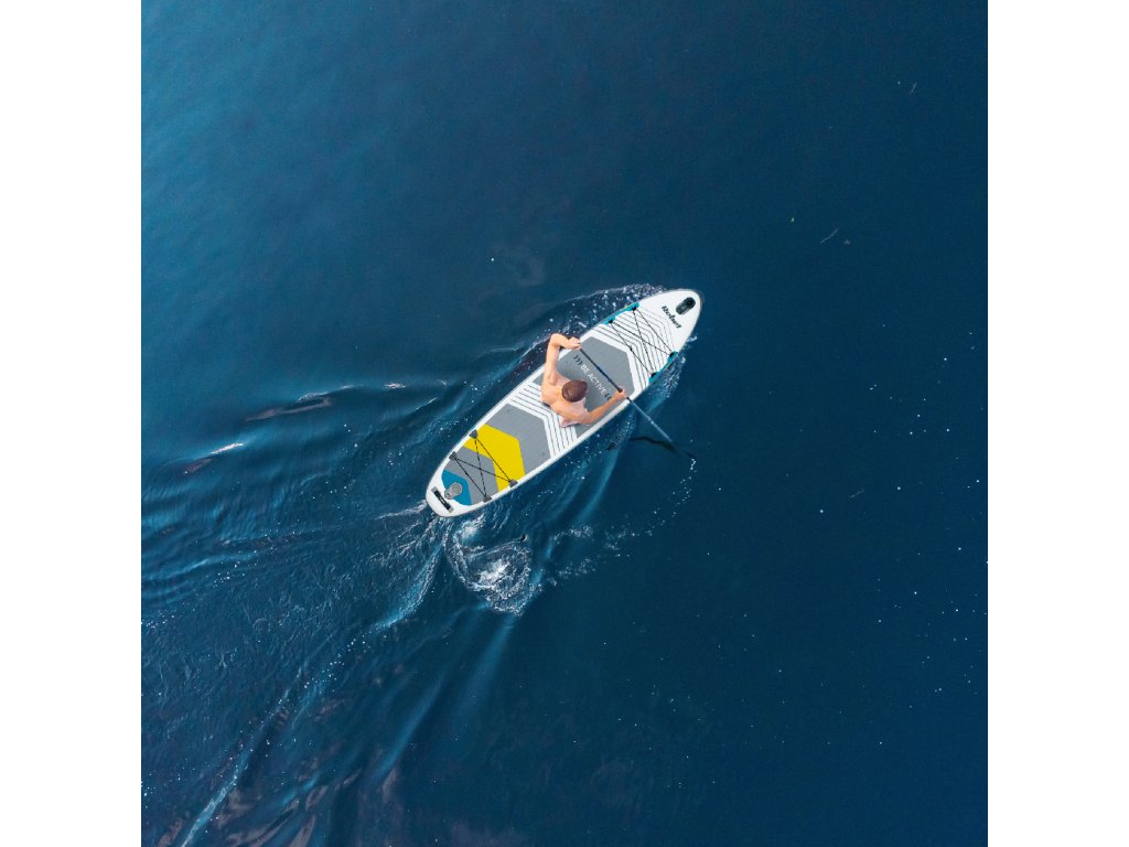 Kľúčovou súčasťou SUP dosky je nastaviteľné štvordielne pádlo, ktoré zaisťuje efektívny výkon na vode. Dôležité je, že si ho môžete prispôsobiť svojim preferenciám a vytvoriť si dvojité kajakové pádlo alebo štandardné T-riadidlo. Prevezmite kontrolu nad smerom a rýchlosťou a každá trasa sa stane nezabudnuteľným dobrodružstvom.