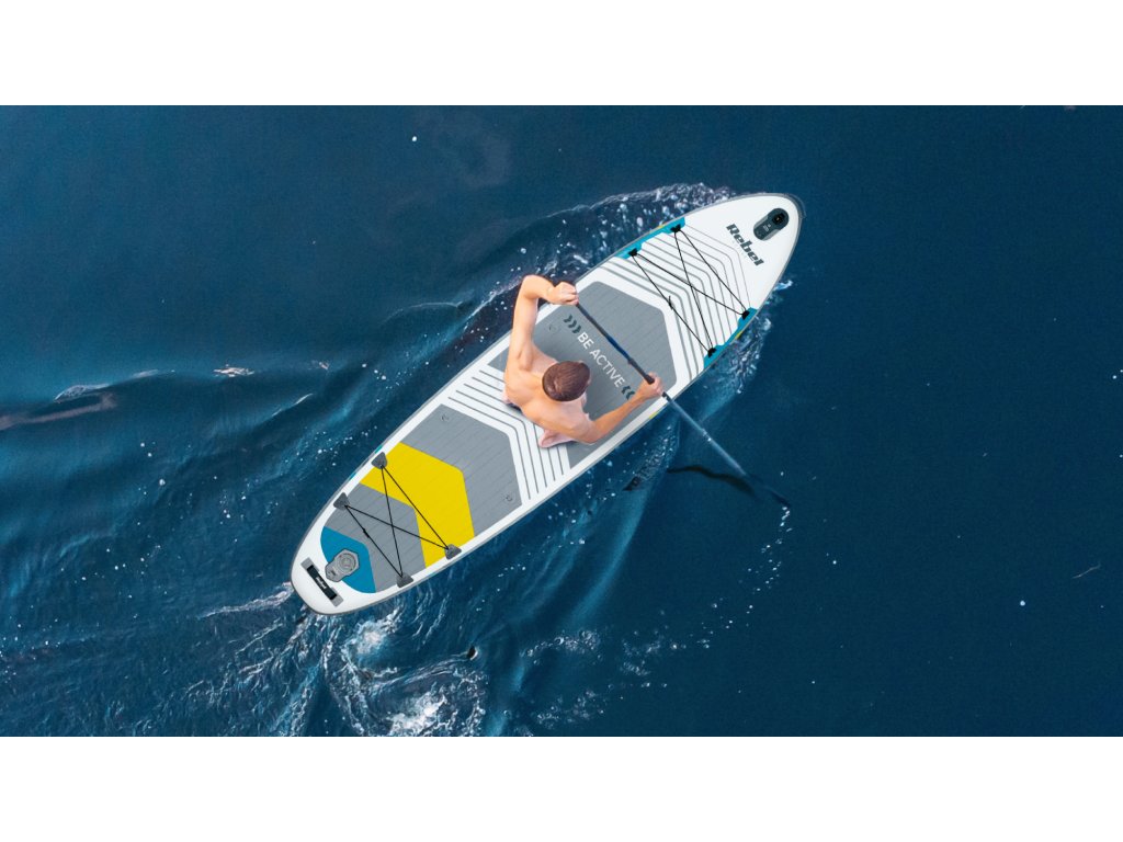 Paddleboard Rebel Active sa vyznačuje pevnou a stabilnou konštrukciou s technológiou drop-stitch. To vám umožní bezpečne sa pohybovať po vode bez ohľadu na vašu úroveň zručností, či už v stoji alebo v sede. Protišmyková doska pokrytá 3 mm hrubou penou EVA poskytuje vynikajúcu priľnavosť, vďaka čomu budú aj tie najintenzívnejšie paddleboardingové sedenia hračkou.