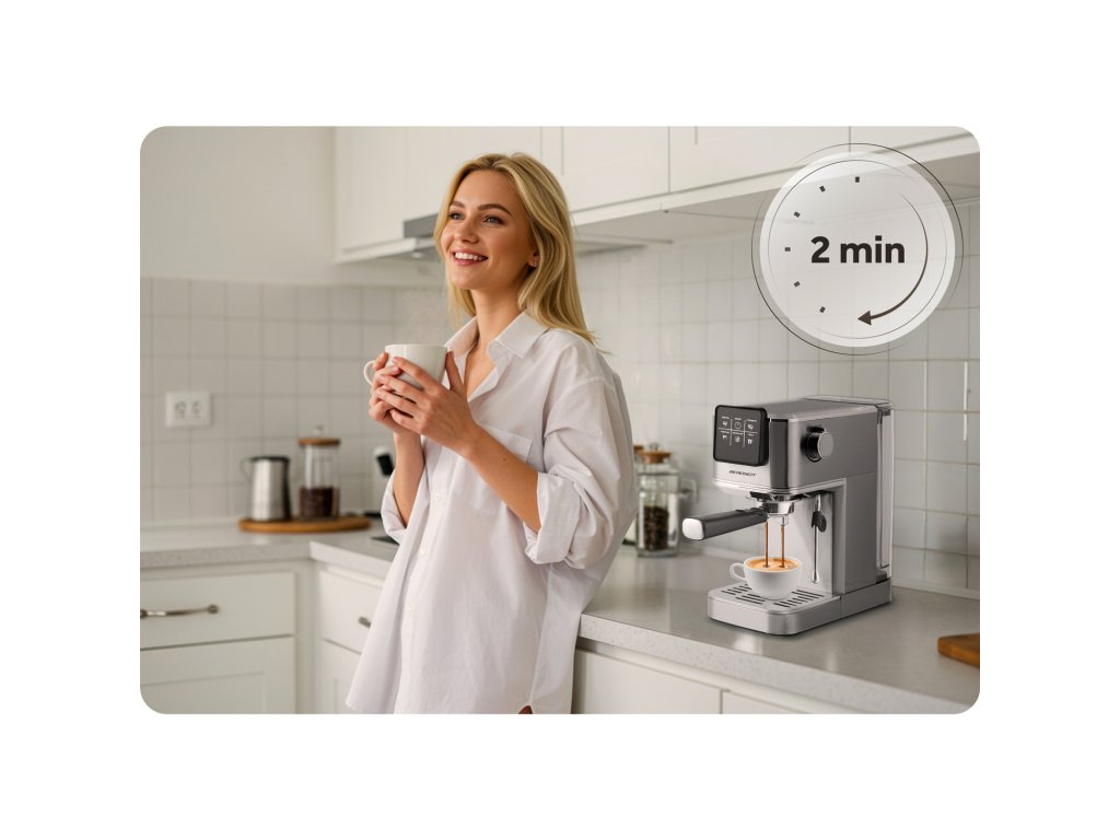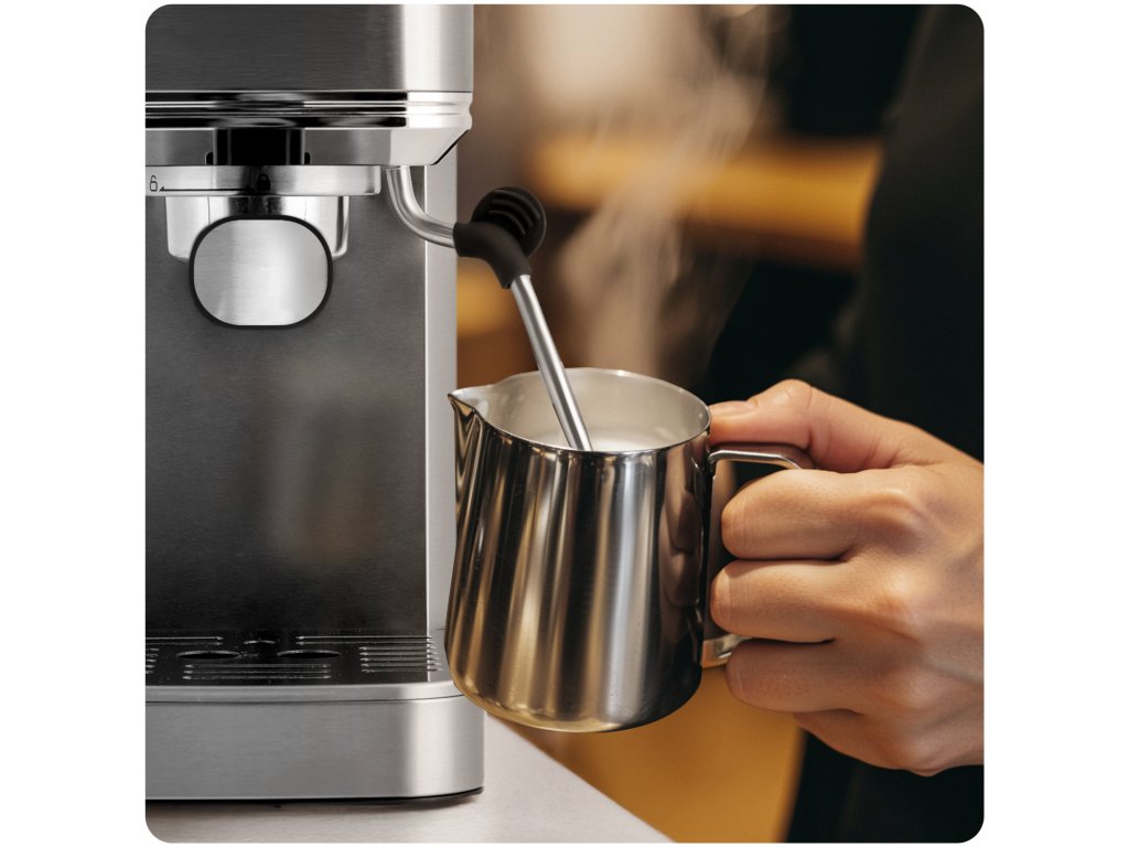 Ekspres kolbowy z dyszą do spieniania mleka 20 bar Zalety produktu: ✅ 20 bar ciśnienia i 1350 W mocy — prawdziwa crema i pełen aromat jak z ulubionej kawiarni. ☕ ✅ Dotykowy ekran — nowoczesna obsługa, zero komplikacji. ✅ Spieniacz do mleka i 2 filtry — przygotuj swoją ulubioną kawę jak barista. ✅ Wyjmowany zbiornik na wodę (1,2 l) — zaparz nawet 10 kaw bez konieczności ciągłego dolewania wody do zbiornika. ✅ Funkcja espresso cold — idealna na upalne dni ⭐⭐⭐⭐⭐ Postaw na smak, styl i profesjonalną jakość — idealny poranek bez zbędnego hałasu! Obudowa ze stali nierdzewnej — trwałość, styl i łatwe czyszczenie w jednym. Dotykowy ekran – pełna kontrola jednym palcem Wybierz swoją ulubioną kawę szybko i wygodnie dzięki nowoczesnemu panelowi dotykowemu. Espresso, latte, cappuccino, americano, a nawet kawa mrożona. Z tym ekspresem przygotujesz profesjonalne napoje w domowym zaciszu – dokładnie tak, jak lubisz. Jedno urządzenie, wiele smaków. Domowa kawiarnia w zasięgu ręki! Moc i precyzja ukryte wewnątrz Wydajna pompa ciśnieniowa 20 bar i precyzyjny system zaparzania wydobywają z kawy wszystko, co najlepsze – intensywny aromat, głęboki smak i perfekcyjną cremę. Nowoczesna konstrukcja to gwarancja niezawodności i profesjonalnego efektu w każdej filiżance. ✔️ Perfekcyjna pianka jak z kawiarni Wbudowana dysza do spieniania pozwala łatwo przygotować mleko do cappuccino, latte i flat white – gęsta, aksamitna pianka w zasięgu ręki! Dysza jest zdejmowana, co ułatwia jej dokładne i szybkie czyszczenie. Najważniejsze cechy, które robią różnicę Cicha praca — ekspres działa wyjątkowo dyskretnie. Wysoka jakość wykonania — solidna obudowa ze stali nierdzewnej i dopracowane detale gwarantują niezawodność. Profesjonalna dysza do spieniania mleka — pozwala przygotować aksamitną piankę do cappuccino, latte i nie tylko. Ciśnienie 20 bar — mocna pompa zapewnia intensywny aromat i bogaty smak każdej kawy. ✔️ Dozuj i ubijaj w jednym ruchu – precyzja i wygoda! W zestawie znajdziesz praktyczne narzędzie 2w1: łyżkę do odmierzania kawy oraz tamper do ubijania. Dzięki niemu łatwo nasypiesz odpowiednią ilość kawy do kolby, a następnie dociśniesz ją równomiernie, co jest kluczowe dla uzyskania pełnego aromatu i bogatego smaku espresso. To wygodne, szybkie i precyzyjne rozwiązanie – idealne zarówno dla początkujących, jak i dla domowych baristów. Zestaw baristy w Twojej kuchni Solidny uchwyt kolbowy, dwa stalowe filtry (pojedynczy i podwójny) oraz praktyczna łyżka z tamperem to zestaw, który pozwoli Ci przygotować espresso dokładnie tak, jak lubisz. Trwałość, precyzja i wygoda użytkowania – wszystko, czego potrzebujesz do domowego rytuału parzenia kawy. Mała filiżanka czy duży kubek? Niezależnie od tego, czy masz ochotę na espresso w filiżance, podwójną porcję, kawę z mlekiem w szklance, czy napój na wynos w kubku termicznym – ten ekspres się dostosuje. Zdejmowana tacka ociekowa pozwala z łatwością dopasować wysokość do każdego naczynia. Dla Ciebie, dla dwojga, na wynos – jak chcesz, kiedy chcesz. ☕ Kawa, która łączy codzienną przyjemność w doskonałym stylu. Najważniejsze elementy Miarka z ubijakiem Przyciski funkcyjne Wskaźniki LED Sito na jedną i dwie kawy Kolba z podwójnym dozownikiem Wyjmowana kratka ociekowa Antypoślizgowa podstawa Wyjmowany zbiornik na wodę ze składaną rączką Wbudowany termometr Pokrętło regulacji emisji pary Spieniacz do mleka Wyjmowana tacka ociekowa ❄️ Cool espresso – orzeźwienie prosto z ekspresu Wystarczy wrzucić kilka kostek lodu do zbiornika, wybrać odpowiedni program i... gotowe! Cool espresso to idealna baza do mrożonej kawy, latte na zimno czy orzeźwiającego espresso tonic. Szybki sposób na letni klasyk – bez blendera i bez czekania! Możesz tworzyć: iced latte, espresso tonic, mrożona mocha, protein coffee on ice. Dane techniczne Ciśnienie pompy: 20 bar Moc nominalna: 1350 W Ekran dotykowy Zasilanie: 220-240 V Pojemnik na wodę: 1,2 l Zdejmowana tacka ociekowa Zdejmowana dysza do spieniania Długość kabla: 0,75 m Kawa mielona W zestawie 2 filtry – pojedynczym lub podwójnym filtrem ze stali nierdzewnej Certyfikaty: CB, CE, GS, RoHS, LFGBDodatočné parametre