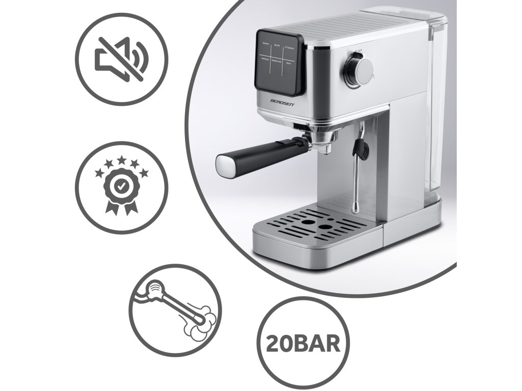 Pákový kávovar 20 bar Berdsen BD-770 strieborný