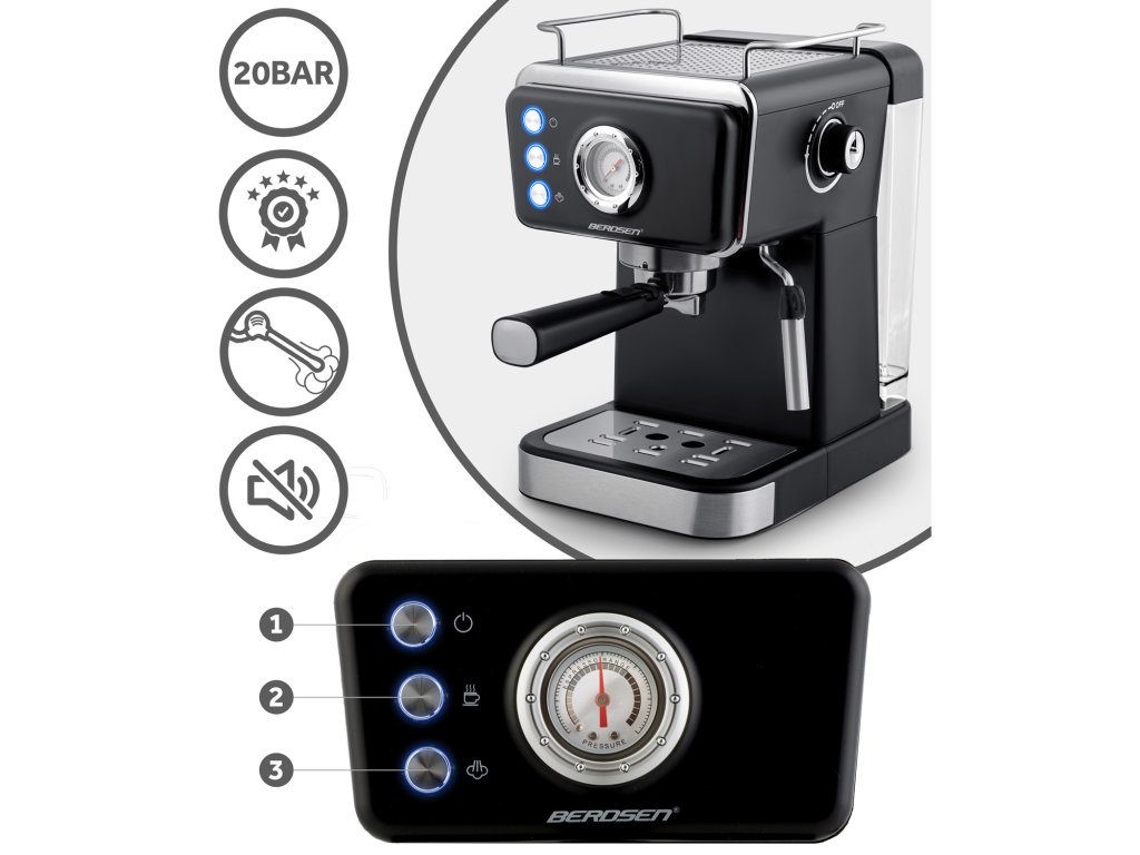 Pákový kávovar 20 barov Berdsen BD-772 čierny