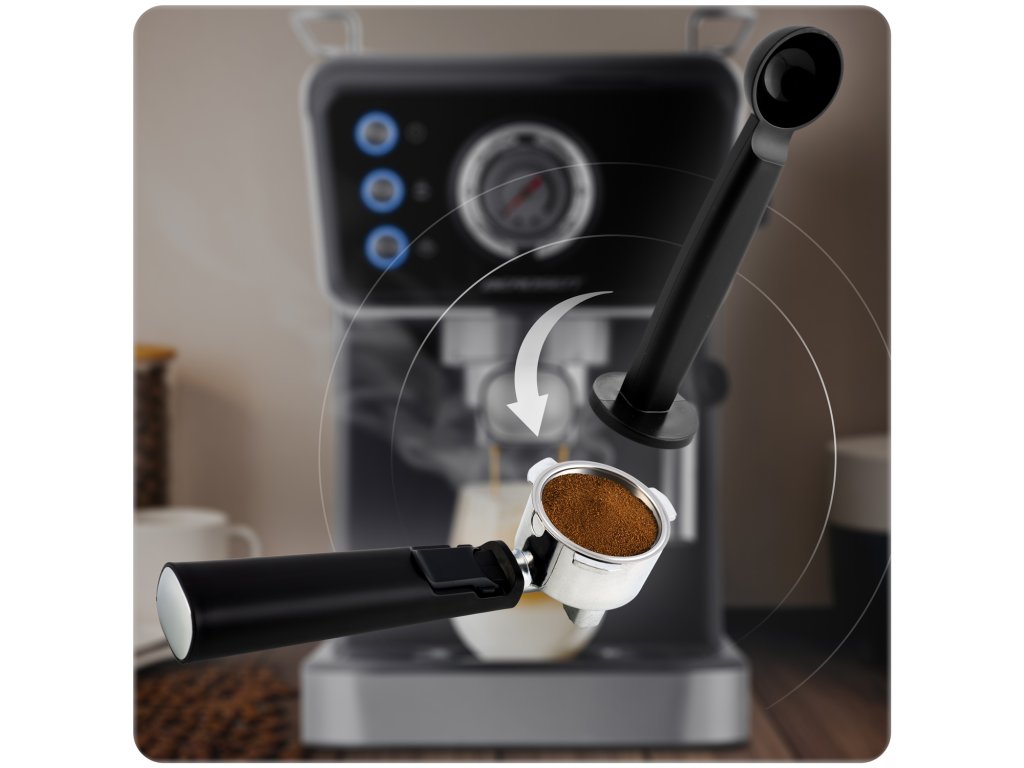 Ekspres kolbowy z dyszą do spieniania mleka 20 bar Zalety produktu: ✅ 20 bar ciśnienia i 1350 W mocy — prawdziwa crema i pełen aromat jak z ulubionej kawiarni. ☕ ✅ Ciśnieniomierz. ✅ Spieniacz do mleka i 2 filtry — przygotuj swoją ulubioną kawę jak barista. ✅ Wyjmowany zbiornik na wodę (1,5 l) — zaparz nawet 12 kaw bez konieczności ciągłego dolewania wody do zbiornika. ✅ Wbudowany ciśnieniomierz — bądź pewny, że Twoja kawa będzie zawsze idealna. ⭐⭐⭐⭐⭐ Postaw na smak, styl i profesjonalną jakość — idealny poranek bez zbędnego hałasu! Espresso, latte, cappuccino, americano. Z tym ekspresem przygotujesz profesjonalne napoje w domowym zaciszu – dokładnie tak, jak lubisz. Jedno urządzenie, wiele smaków. Domowa kawiarnia w zasięgu ręki! Moc i precyzja ukryte wewnątrz Wydajna pompa ciśnieniowa 20 bar i precyzyjny system zaparzania wydobywają z kawy wszystko, co najlepsze – intensywny aromat, głęboki smak i perfekcyjną cremę. Nowoczesna konstrukcja to gwarancja niezawodności i profesjonalnego efektu w każdej filiżance. ✔️ Perfekcyjna pianka jak z kawiarni Wbudowana dysza do spieniania pozwala łatwo przygotować mleko do cappuccino, latte i flat white – gęsta, aksamitna pianka w zasięgu ręki! Dysza jest zdejmowana, co ułatwia jej dokładne i szybkie czyszczenie. Najważniejsze cechy, które robią różnicę Cicha praca — ekspres działa wyjątkowo dyskretnie. Wysoka jakość wykonania — dopracowane detale gwarantują niezawodność. Profesjonalna dysza do spieniania mleka — pozwala przygotować aksamitną piankę do cappuccino, latte i nie tylko. Ciśnienie 20 bar — mocna pompa zapewnia intensywny aromat i bogaty smak każdej kawy. Proste przyciski funkcyjne: on/off, parzenie kawy, uruchomienie dyszy do spieniania mleka. ✔️ Dozuj i ubijaj w jednym ruchu – precyzja i wygoda! W zestawie znajdziesz praktyczne narzędzie 2w1: łyżkę do odmierzania kawy oraz tamper do ubijania. Dzięki niemu łatwo nasypiesz odpowiednią ilość kawy do kolby, a następnie dociśniesz ją równomiernie, co jest kluczowe dla uzyskania pełnego aromatu i bogatego smaku espresso. To wygodne, szybkie i precyzyjne rozwiązanie – idealne zarówno dla początkujących, jak i dla domowych baristów. Zestaw baristy w Twojej kuchni Solidny uchwyt kolbowy, dwa stalowe filtry (pojedynczy i podwójny) oraz praktyczna łyżka z tamperem to zestaw, który pozwoli Ci przygotować espresso dokładnie tak, jak lubisz. Trwałość, precyzja i wygoda użytkowania – wszystko, czego potrzebujesz do domowego rytuału parzenia kawy. Mała filiżanka czy duży kubek? Niezależnie od tego, czy masz ochotę na espresso w filiżance, podwójną porcję, kawę z mlekiem w szklance, czy napój na wynos w kubku termicznym – ten ekspres się dostosuje. Zdejmowana tacka ociekowa pozwala z łatwością dopasować wysokość do każdego naczynia. Dla Ciebie, dla dwojga, na wynos – jak chcesz, kiedy chcesz. ☕ Kawa, która łączy. Codzienna przyjemność w doskonałym stylu. Najważniejsze elementy Miarka z ubijakiem Przyciski funkcyjne Ciśnieniomierz Sito na jedną i dwie kawy Kolba z podwójnym dozownikiem Wyjmowana kratka ociekowa Antypoślizgowa podstawa Wyjmowany zbiornik na wodę ze składaną rączką Wbudowany termometr Pokrętło regulacji emisji pary Spieniacz do mleka Wyjmowana tacka ociekowa Dane techniczne Ciśnienie pompy: 20 bar Moc nominalna: 1350 W Ekran dotykowy Zasilanie: 220-240 V Pojemnik na wodę: 1,5 l Zdejmowana tacka ociekowa Zdejmowana dysza do spieniania Długość kabla: 0,75 m Kawa mielona Ciśnieniomierz W zestawie 2 filtry – pojedynczym lub podwójnym filtrem ze stali nierdzewnej Certyfikaty: CB, CE, GS, RoHS, LFGB,Dodatočné parametre
