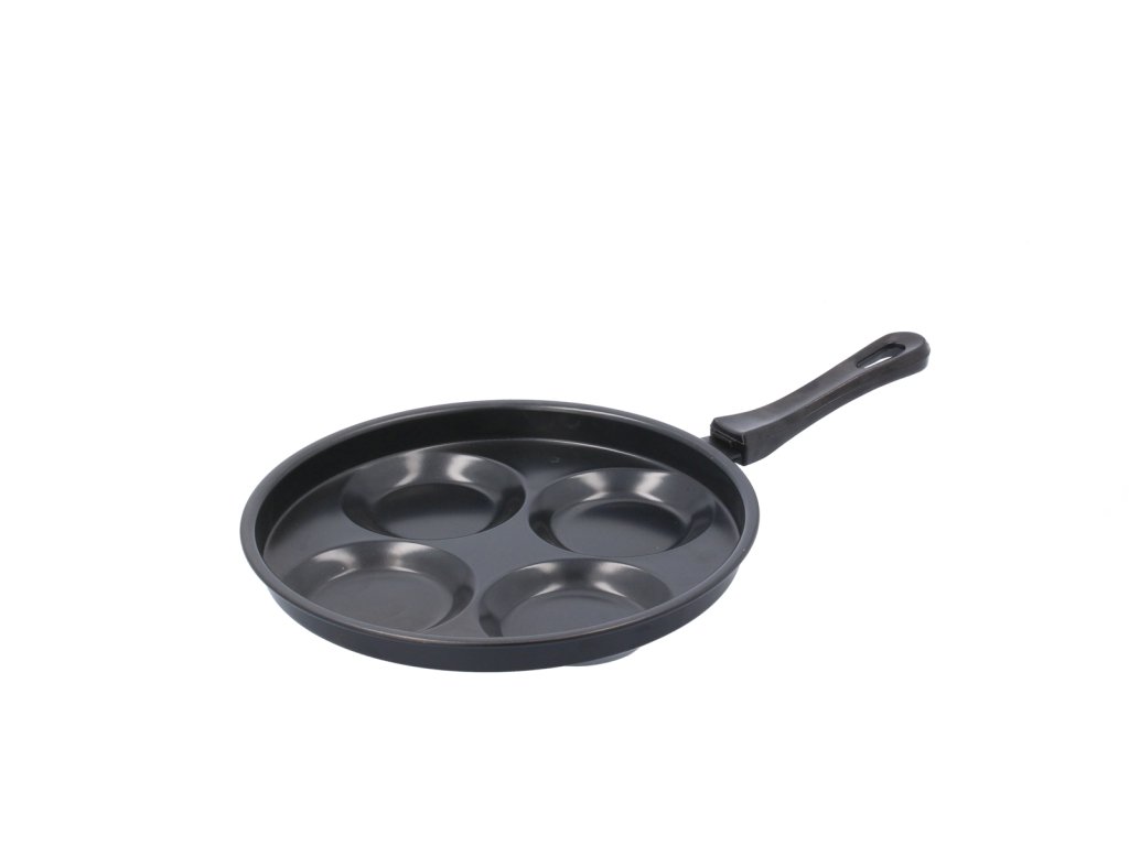 Panvica na vajcia z uhlíkovej ocele s hrúbkou 0,8 mm. Vnútro panvice je pokryté čiernym nepriľnavým povlakom a vonkajší povrch je vyrobený z tepelne odolného materiálu. Pohodlná rukoväť z plastu zabezpečuje pohodlné používanie.Dodatočné parametre